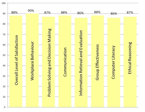 Columbia College is committed to graduate professional program students who have appropriate sets of knowledge, skills, attitudes, and behaviors that are valued by their employers. To achieve this goal, Columbia consistently seeks input and feedback from employers, professional bodies, and industry groups on an ongoing basis. The following chart represents the views of employers regarding Columbia College students in field-based work practicums.